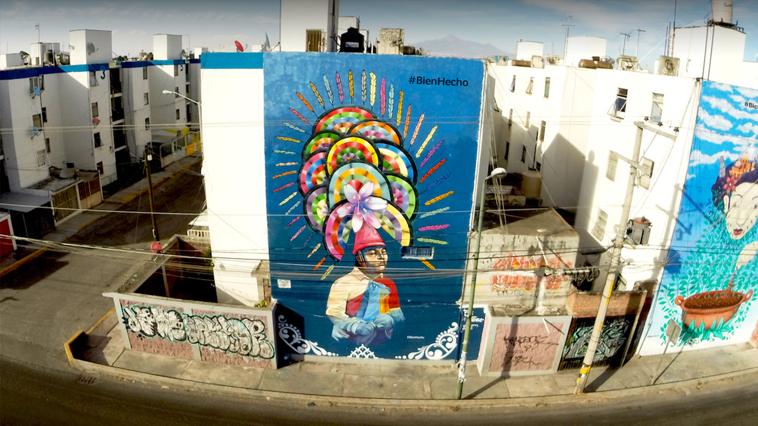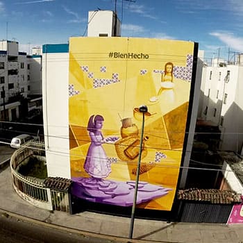 En la Unidad Habitacional Villafrontera, ubicada sobre la Autopista México-Puebla, los habitantes cotidianamente se encontraban con aburridos muros blancos que revestían los exteriores de los edificios. Su panorama cambió una vez que se sumaron al programa de México Bien Hecho para crear el primer corredor cultural urbano conformado por seis murales de gran escala que cubrieron las fachadas colindantes a la Autopista, ofreciendo un espectáculo único a los vehículos que circulan por una de las principales vías de acceso a la ciudad de Puebla.