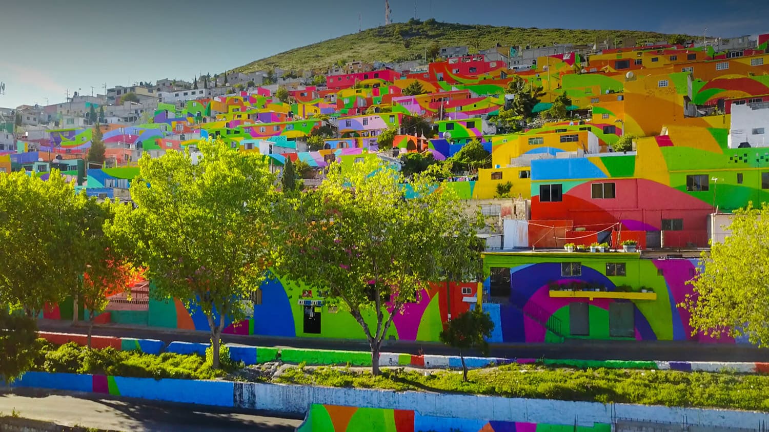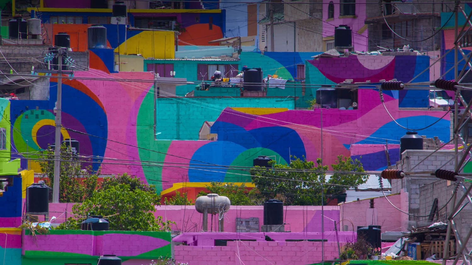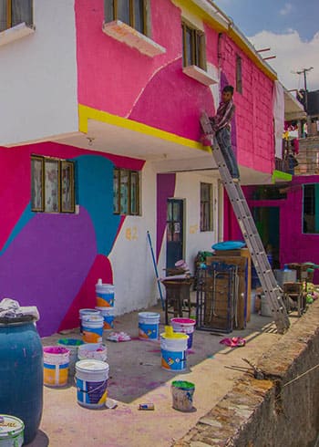 Adicional a los muros de las fachadas, se ilustró a las personas que forman a la comunidad a través de murales que narran las historias locales, en algunos casos, de resistencia, la pasión por el trabajo y la lucha que han llevado a cabo para construir sus casas en un terreno tan irregular.