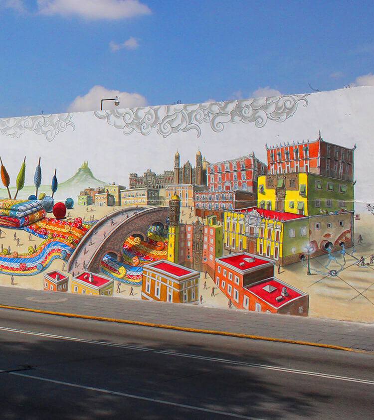 Llenas de tradiciones y folclor, las calles del Centro de Puebla se convirtieron en un enorme lienzo para que artistas plasmaran distintos relatos e historias locales transformando olvidados muros en fascinantes murales que invitan a viajar en el tiempo para recordar la fundación de la ciudad y la relevancia de su legado artístico y cultural.
