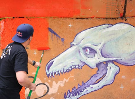 El bajo puente se encontraba en un estado total de deterioro, pintarrajeado con grafitis, una área abandonada, solitaria e insegura que ya nadie utilizaba. Con la participación de vecinos, así como alumnos y amigos de Sauro, se realizaron trabajos de rehabilitación del espacio durante dos semanas rescatando un pool skateboard o piscina para patinadores. Además, se pintaron rampas y escalinatas para que volvieran a ser utilizados.